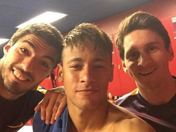 | Trước đó, Neymar tung bức ảnh tự sướng cùng Messi và Suarez. Cựu sao Santos tiết lộ: "Trong phòng thay đồ, chúng tôi không dùng tên riêng và cũng chẳng dùng MSN. Chúng tôi gọi nhau bằng tên khác. Tuy nhiên, tôi sẽ không tiết lộ điều đó cho các bạn". |