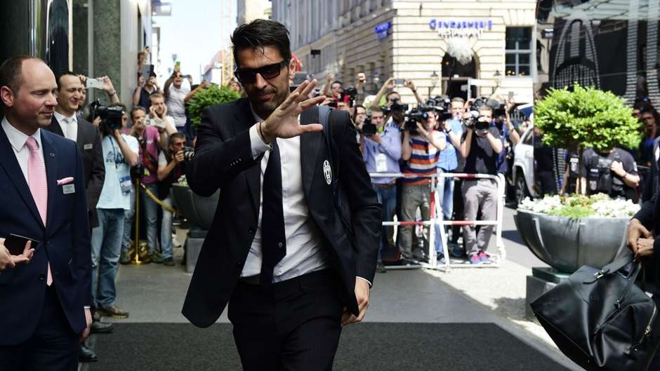 Gigi Buffon và đồng đội được sự chào đón nồng nhiệt của người hâm mộ tại Berlin. Ở tuổi 37, Buffon vẫn đang duy trì phong độ thăng hoa. Anh đóng góp rất nhiều công sức vào cú đúp danh hiệu của Juventus tại giải năm nay (Serie A và Coppa Italia).
