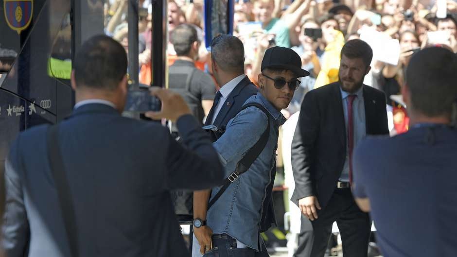 Neymar đội chiếc mũ hip-hop quen thuộc. Ngôi sao người Brazil đang trải qua mùa giải thăng hoa bên cạnh hai đàn anh Lionel Messi và Luis Suarez.