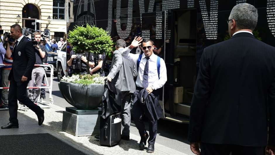 Tiền đạo Carlos Tevez vẫy tay chào người hâm mộ tại Berlin. Cựu cầu thủ Manchester United chơi rất thuyết phục mùa này. Trong bài phát biểu trước trận, Lionel Messi đánh giá tiền đạo đồng hương là cầu thủ nguy hiểm nhất của Juventus ở chung kết Champions League.