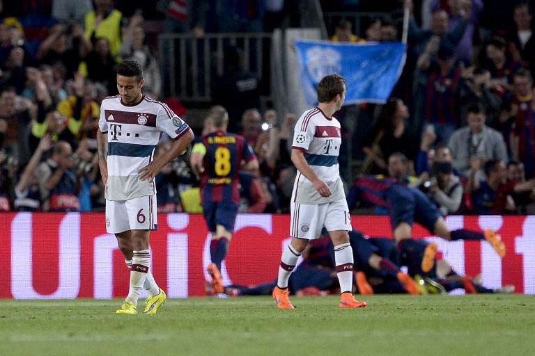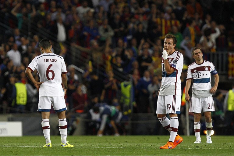 | Trong lần trở lại sân Nou Camp, tiền vệ Thiago Alcantara trải qua trận thua đau cùng Bayern. |
