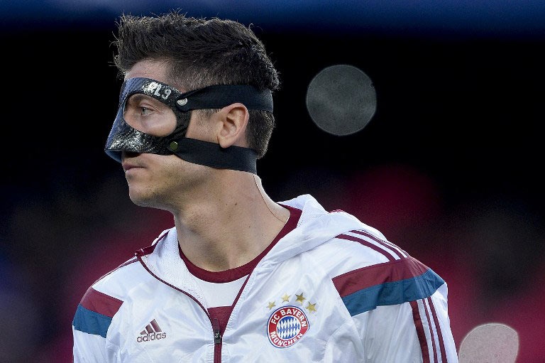 | Tiền đạo Lewandowski đeo mặt nạ Zorro ra sân. Tuy nhiên, nỗ lực của anh không thể giúp Bayern tránh trận thua trước Barca. |