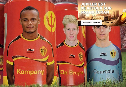 Được biết, hãng bia Jupiler đã ký hợp đồng tài trợ cho LĐBĐ Bỉ nên được quyền sử dụng hình ảnh của các cầu thủ trên các sản phẩm của mình. Bù lại, LĐBĐ Bỉ sẽ đút túi một khoản tiền không nhỏ trong lần ký kết này. Không những thế, hãng bia Jupiler cũng hứa sẽ giúp đỡ hết mình nếu ĐT Bỉ có mặt ở VCK World Cup 2014. Cụ thể, các cầu thủ sẽ được uống bia, thậm chí là bơi trong bia nếu muốn.