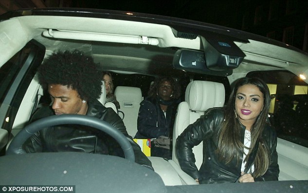 | Trong buổi tối đi chơi với Neymar, tiền vệ Willian đưa bà xã Vanessa Martins và những người bạn đi cùng. |