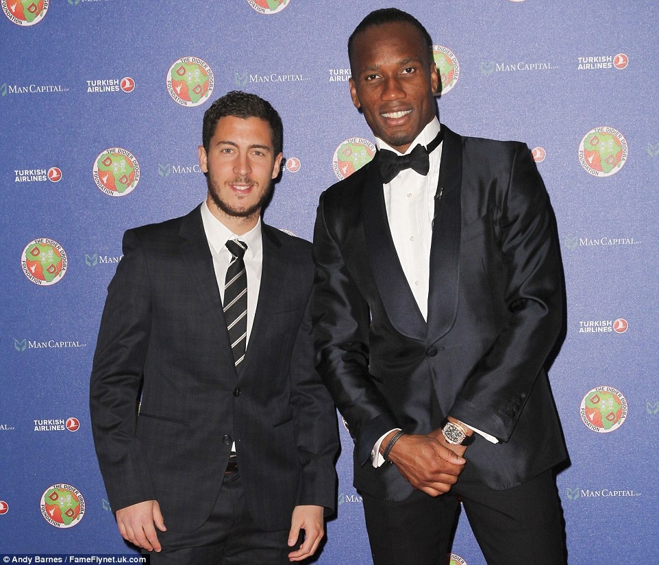 | Cầu thủ mang về chiến thắng cho Chelsea, Eden Hazard cùng đàn anh Didier Drogba. |