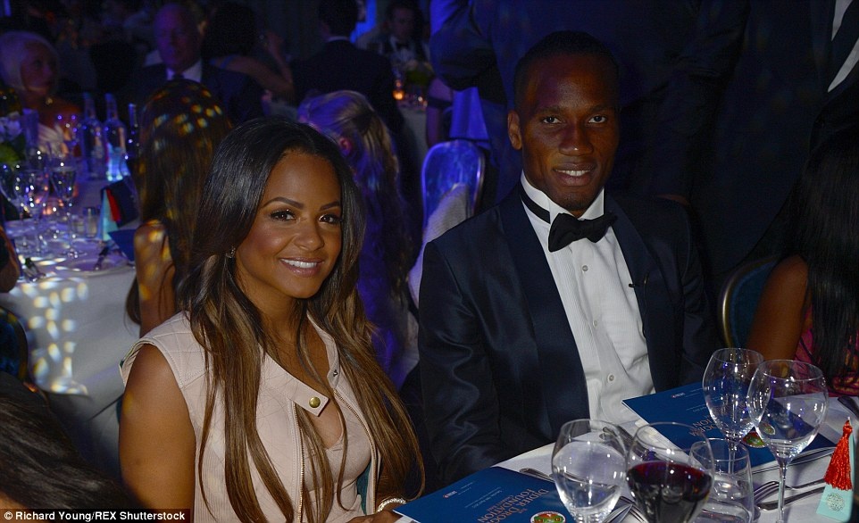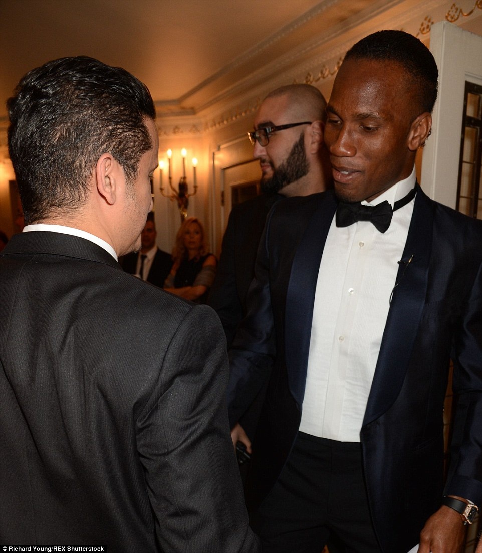| Tiền đạo Drogba trò chuyện với khách mời trong buổi tiệc. |