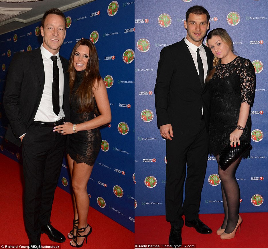 | Thủ quân John Terry và hậu vệ phải Ivanovic dự tiệc cùng bà xã. Hai cầu thủ này đều thi đấu tốt khi giúp hàng phòng ngự Chelsea đứng vững trước các pha tấn công của M.U. |