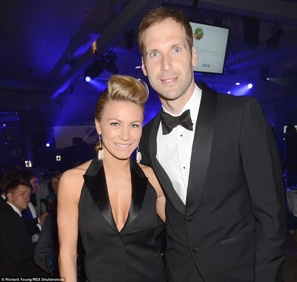 | Thủ môn Petr Cech đến cùng bóng hồng Cechova. Anh không được ra sân ở trận Chelsea gặp M.U |