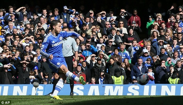 | Hazard nâng tỷ số lên 3-0 cho đội chủ sân Stamford Bridge từ chấm 11m. |
