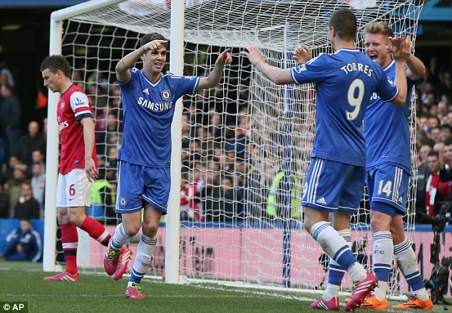| Oscar hoàn tất cú đúp ở trận gặp Arsenal. |