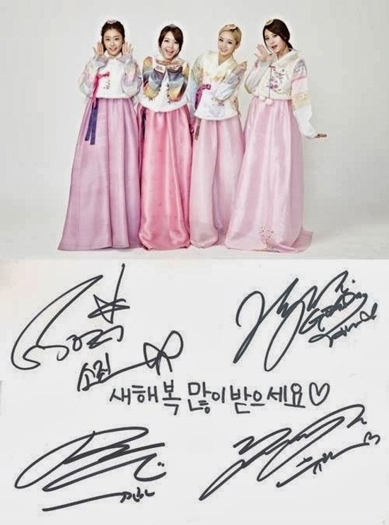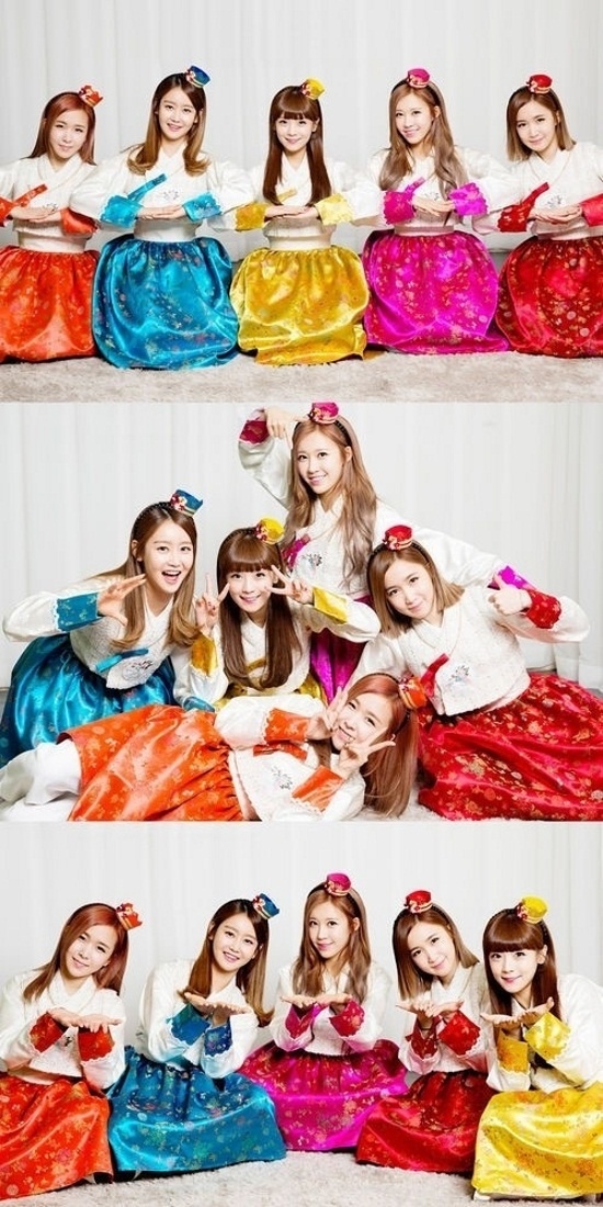 | Thay vì mặc hanbok truyền thống, các thành viên của nhóm nhạc TINT lại chọn những bộ hanbok cách điệu. Các cô nói: “Chúc các bạn có một năm âm lịch thật hạnh phúc và chúng tôi hy vọng năm 2014 sẽ là những khoảnh khắc đáng nhớ đối với các bạn. Chúng tôi đã ra mắt vào năm ngoái và đã có một năm thật vui vẻ vì luôn theo đuổi mơ ước của mình. Chúng tôi sẽ làm việc chăm chỉ hơn nữa trong năm 2014 và cố gắng hết sức để trở thành những ca sĩ được mọi người yêu thích”. |