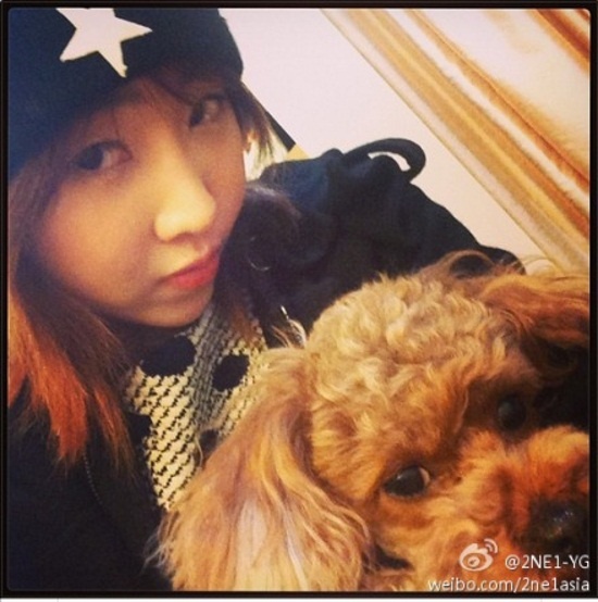 | Minzy của nhóm 2NE1 đăng một bức ảnh ngộ nghĩnh với cún cưng và chúc tất cả mọi người có một năm mới vui vẻ bên cạnh gia đình. |