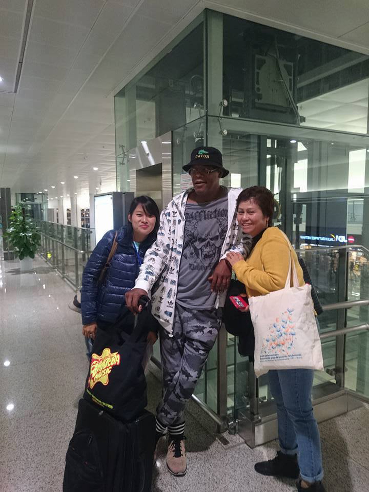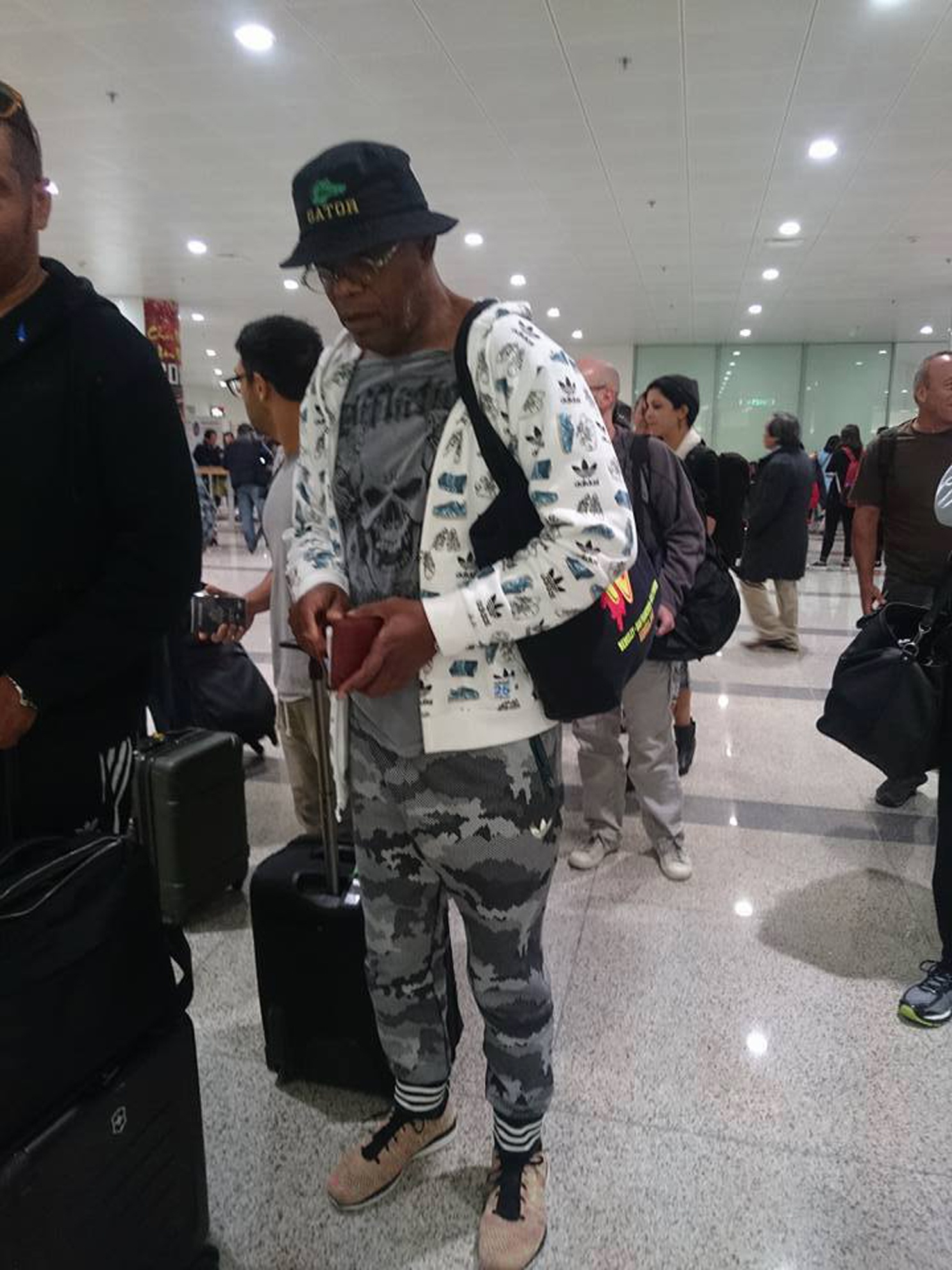 Nhiều người hâm mộ tại sân bay Nội Bài lập tức nhận ra tài tử da màu. Nam diễn viên 67 tuổi rất thân thiện và không từ chối chụp ảnh lưu niệm chung.