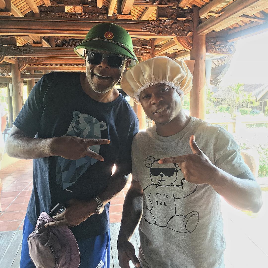 Trên trang cá nhân mới đây, nam diễn viên nổi tiếng Samuel L. Jackson đăng bức ảnh chụp một quán nhỏ bán dê nướng ven đường ở một làng quê Việt.