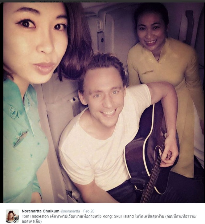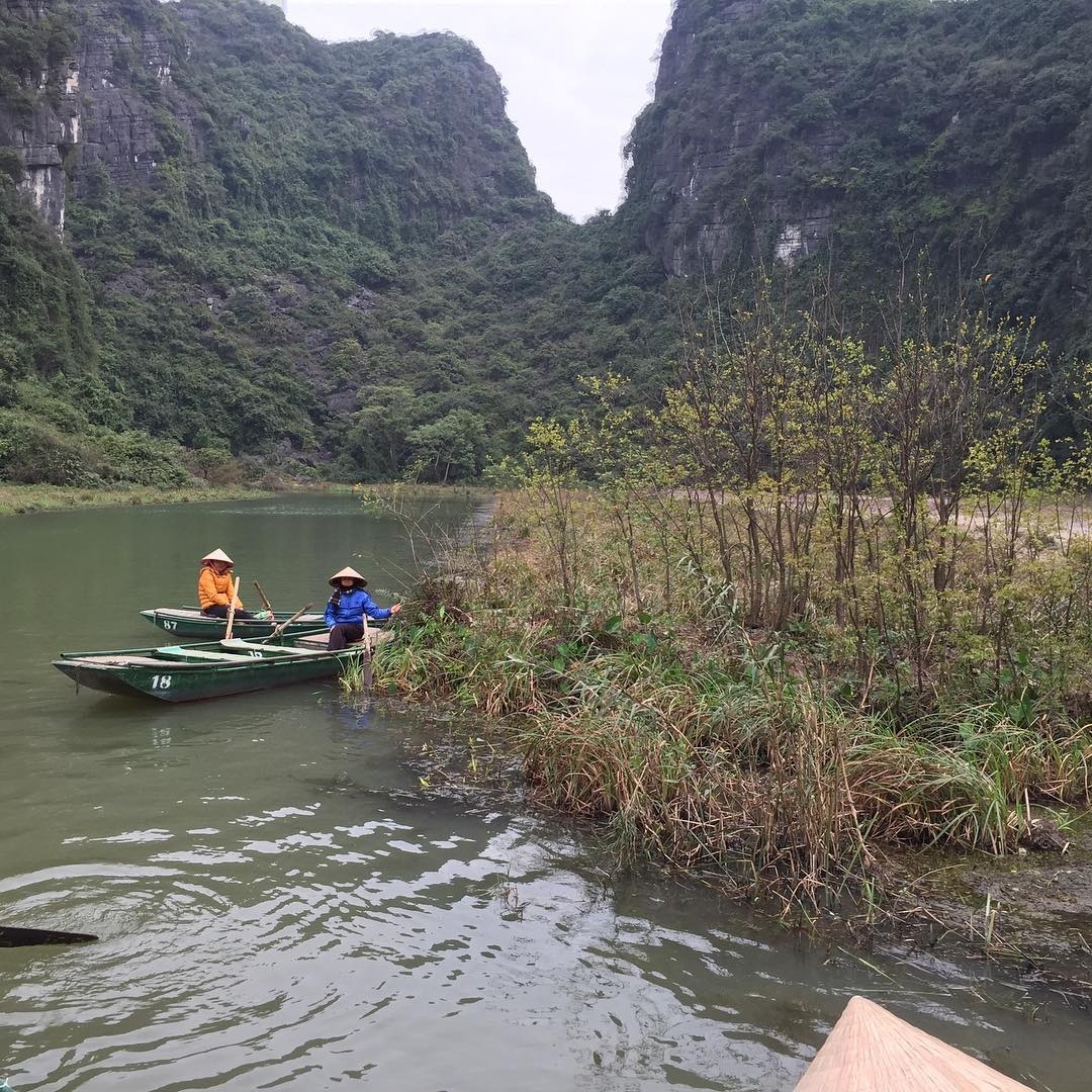 Trước đó, trong chuyến thăm Tràng An, tài tử Kong: Skull Island ghi lại khoảnh khắc 2 người phụ nữ chèo thuyền bên sông cùng dòng chú thích: "đoàn phim đi làm bằng thuyền".