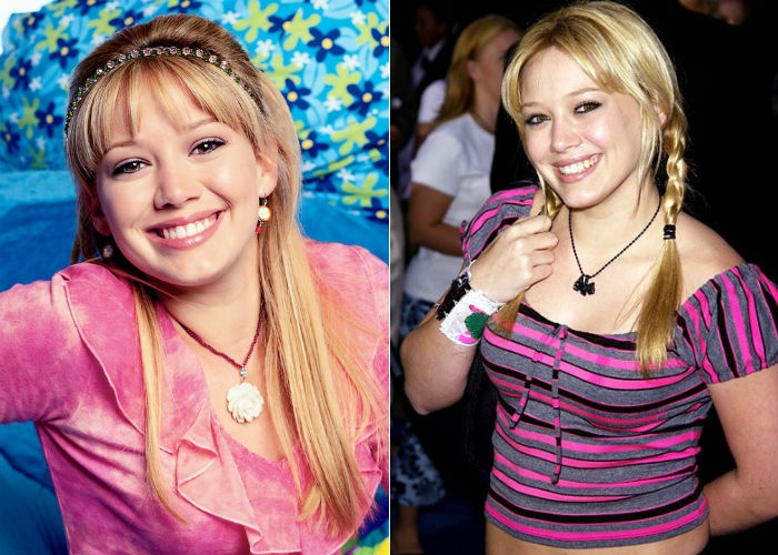 Vai chính trong phim Lizzie McGuire đã đưa tên tuổi Hilary Duff đến gần hơn với khán giả nhỏ tuổi trên khắp thế giới trong suốt những năm 2001 - 2004. Khi bắt đầu quay bộ phim, Hilary vẫn còn là một cô bé 13 tuổi mũm mĩm, dễ thương. Một năm sau, khi xuất hiện trong buổi công chiếu Blue Crush (ảnh phải) tại Los Angeles, cô bé 14 tuổi vẫn thu hút mọi ánh nhìn bằng nụ cười tươi rói. Tuy nhiên, Hilary thời điểm này khá tròn trịa, mập mạp. Cân nặng trở thành vấn đề đau đầu với nữ ca sĩ/diễn viên từ ngày còn nhỏ cho tới tận bây giờ.