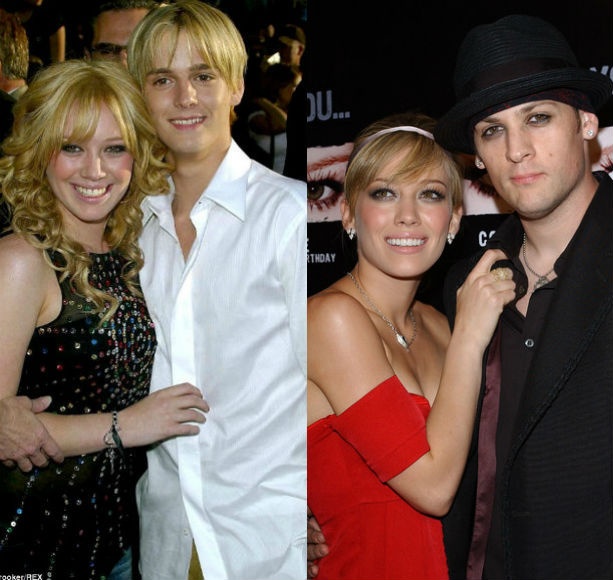 Năm 2003, khi mới 15 tuổi, Hilary Duff hẹn hò với Aaron Carter, em trai của Nick Carter. Chuyện tình đẹp của cặp trai tài gái sắc nhanh chóng tan vỡ khi kẻ thứ ba - Lindsay Lohan xuất hiện. Aaron Carter đã lén lút qua lại với cô nàng Mean Girls sau lưng bạn gái. Sau khi cặp đôi chia tay, Aaron gắn bó với Lindsay Lohan một thời gian và rồi quay lại với Hilary. Song, Aaron Carter vẫn chỉ là tình cũ của một thời ngây dại đối với Hilary. Từ năm 2004 đến 2006, Hilary Duff hẹn hò với ca sĩ Joel Madden. Thời điểm này Hilary bắt đầu gầy đi trông thấy.