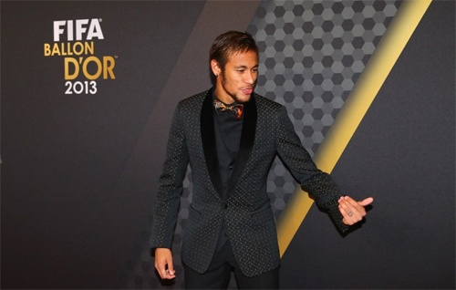 Giống Messi, Neymar cũng mắc lỗi trang phục khi tới dự sự kiện lớn như thế này. Anh chọn chiếc áo vest chấm bi, kết hợp cùng chiếc nơ họa tiết màu mè không chút liên quan.