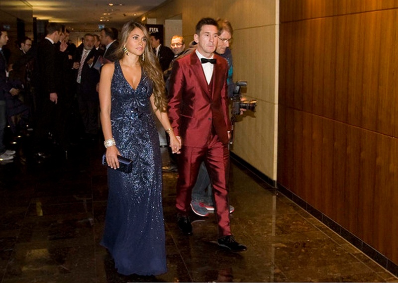 | Messi, kỳ phùng địch thủ số 1 của Ronaldo tới lễ trao giải cùng bạn gái. Khác với Ronaldo, Lionel Messi rất hiếm khi đưa con trai tới các sự kiện như thế này. |