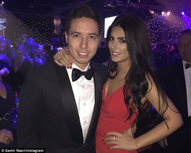 | Tiền vệ Nasri không rời bạn gái người mẫu Atanes nửa bước. Ở chỗ nào cặp đôi này cũng quấn quýt nhau. |