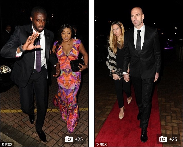 | Tiền vệ Yaya Toure có vẻ khó chịu với cánh săn ảnh khi đi cùng vợ Gineba. Trong khi thủ môn Willy Caballero và bà xã Lucia không thoải mái trước ống kính máy quay. |