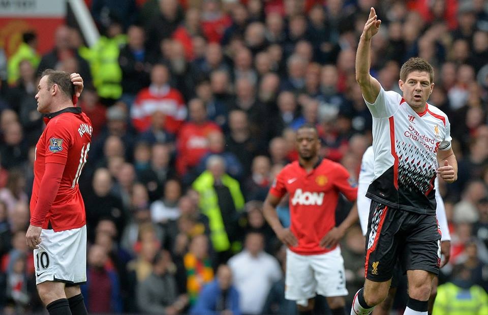 | Hình ảnh trái ngược nhau của Rooney (M.U) và Gerrard (Liverpool). |