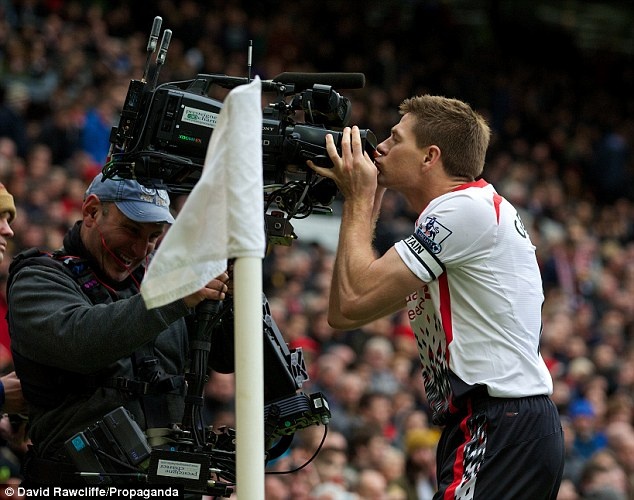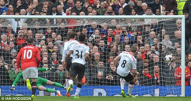 | Trên chấm 11m, Gerrard đánh bại thủ môn De Gea mở tỷ số cho đội khách. |