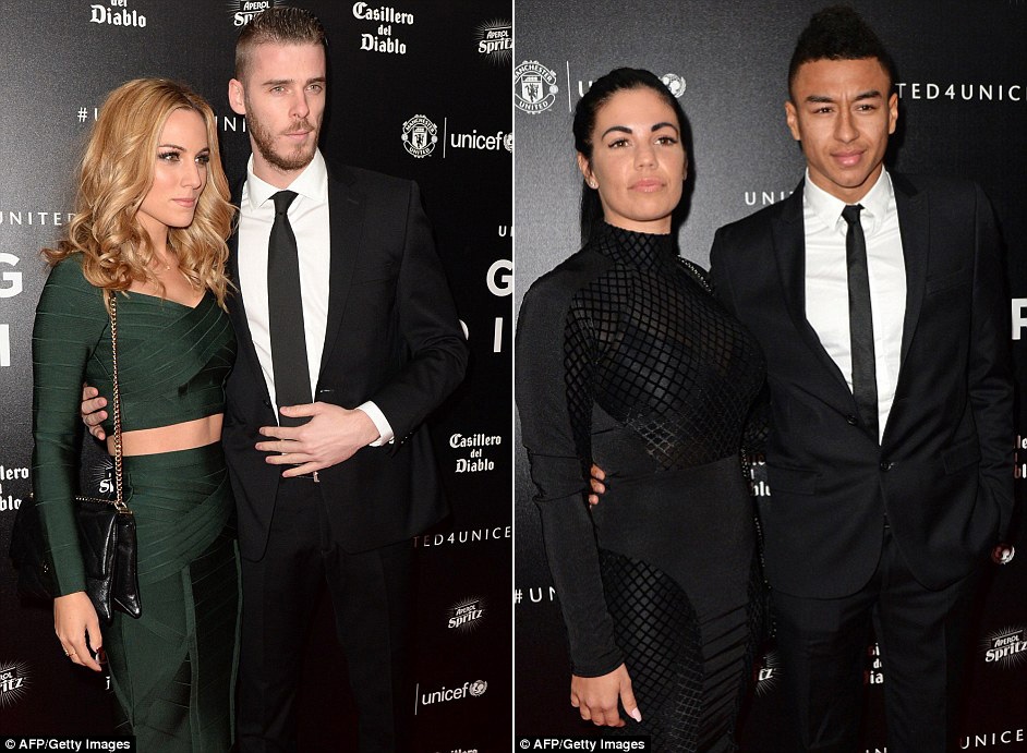 | Thủ môn David de Gea và tiền vệ Jesse Lingard (phải) cùng đưa bạn gái đến "Gala Dinner" năm nay. |