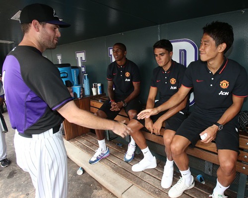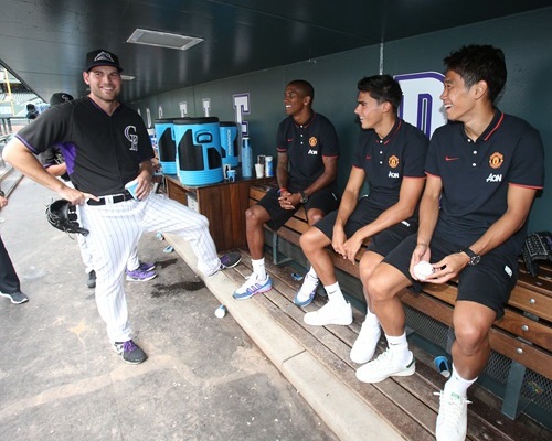 | Trong khi đó, Reece James cùng Kagawa và Ashley Young tới thăm câu lạc bộ bóng chày Colorado Rockies. |