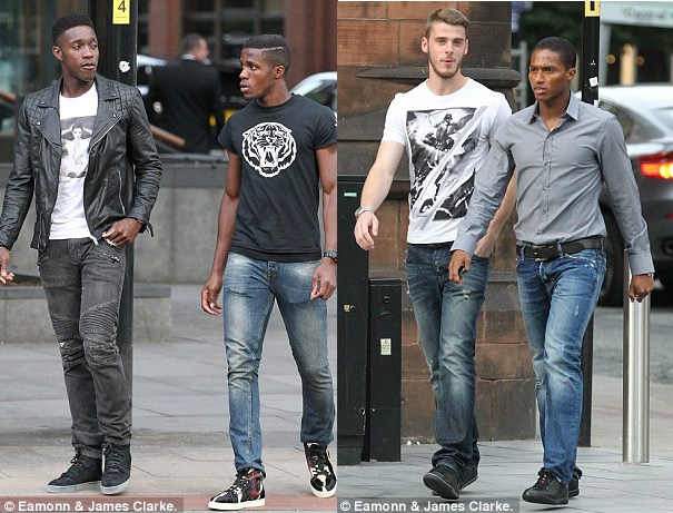 Tiền đạo Welbeck (cầu thủ lập cú đúp trong trận gặp Swansea), tân binh Zaha, thủ môn De Gea và tiền vệ Valencia đi một mình đến điểm hẹn của MU.