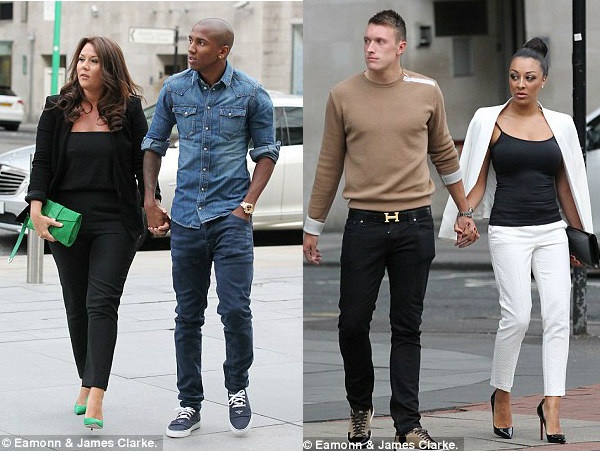 Chris Smalling (trái) đưa bóng hồng của mình đi cùng. Tiền vệ trẻ Tom Cleverley cũng đem bạn gái đến buổi gặp gỡ của các cầu thủ MU.