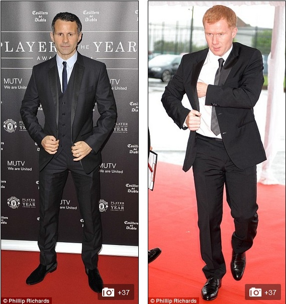 | HLV tạm quyền Ryan Giggs và trợ lý Paul Scholes một mình đến dự buổi trao giải. |