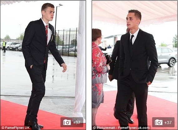 | Tiền vệ Tom Cleverley và tiền đạo Danny Welbeck không đem theo "một nửa" của mình tới dự buổi tổng kết. |
