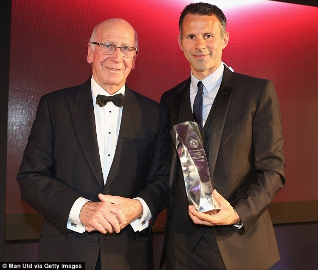| Cầu thủ kiêm quyền HLV Ryan Giggs nhận danh hiệu Thành tựu trọn đời từ Sir Bobby Charlton. |