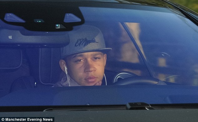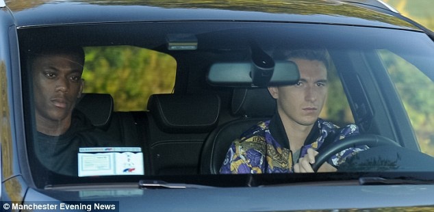 | Hai tân binh Anthony Martial (trái) và Matteo Darmian đi cùng xe đến sân tập Carrington. |