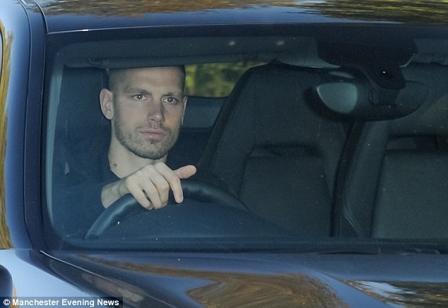 | Tiền vệ lão tướng Michael Carrick lái xe đến sân tập. Anh sẽ tiếp tục cạnh tranh vị trí đá chính với Schweinsteiger và Schneiderlin ở MU thời gian tới. |