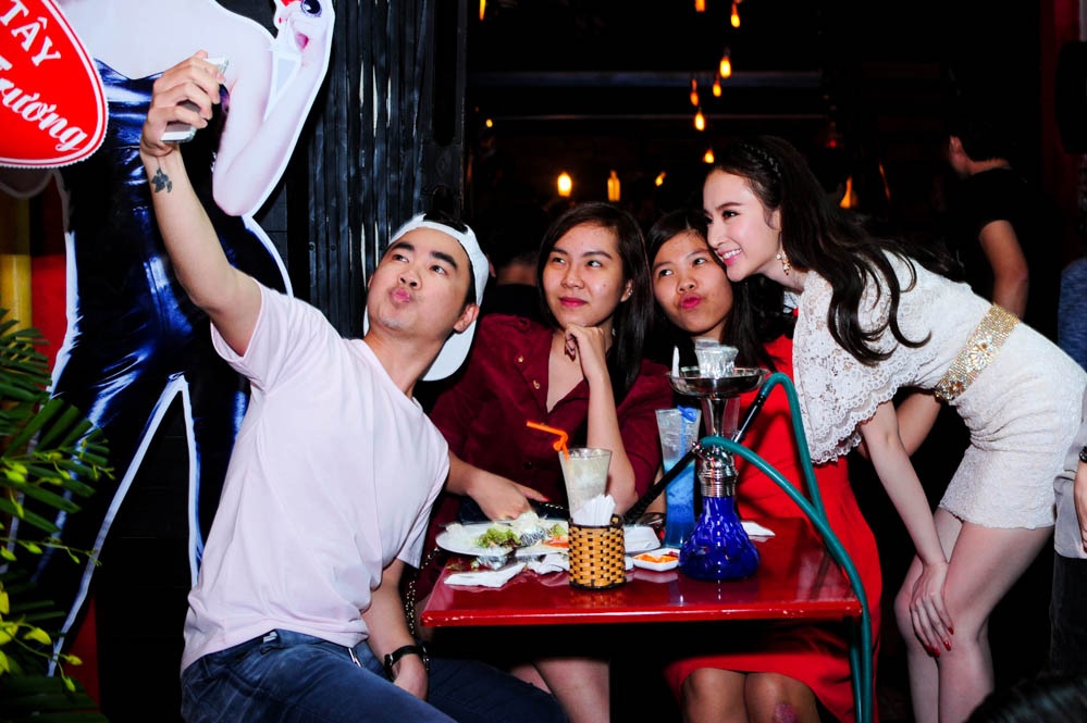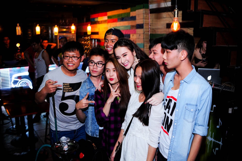 Rất nhiều bạn trẻ đến ủng hộ quán của Angela Phương Trinh và xin được chụp hình với nữ diễn viên.