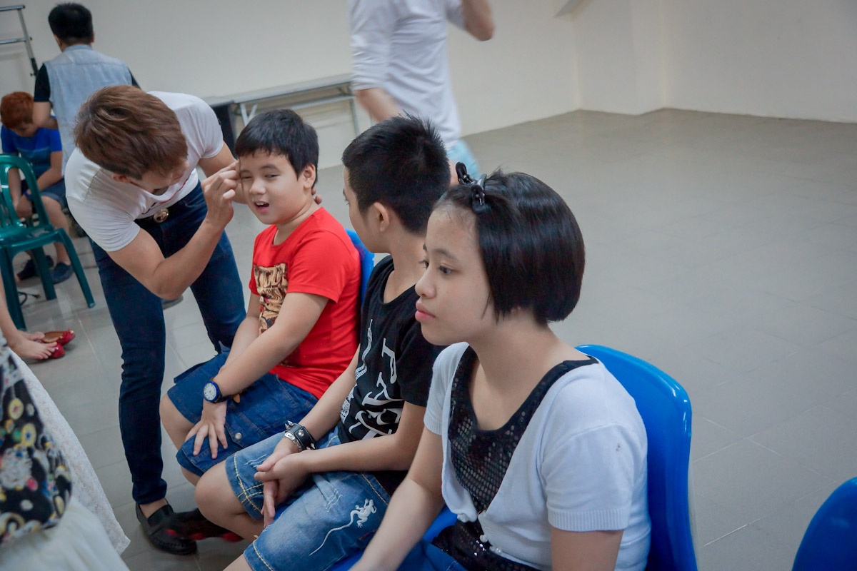| Trong khi đó, Quang Anh lại trầm tĩnh ngồi yên lặng để các cô chú có thể làm việc tốt nhất. |