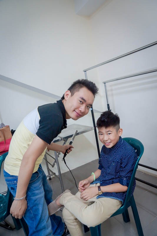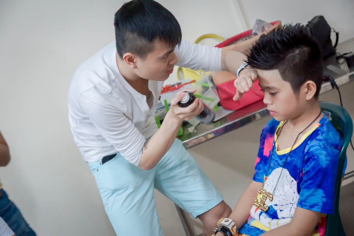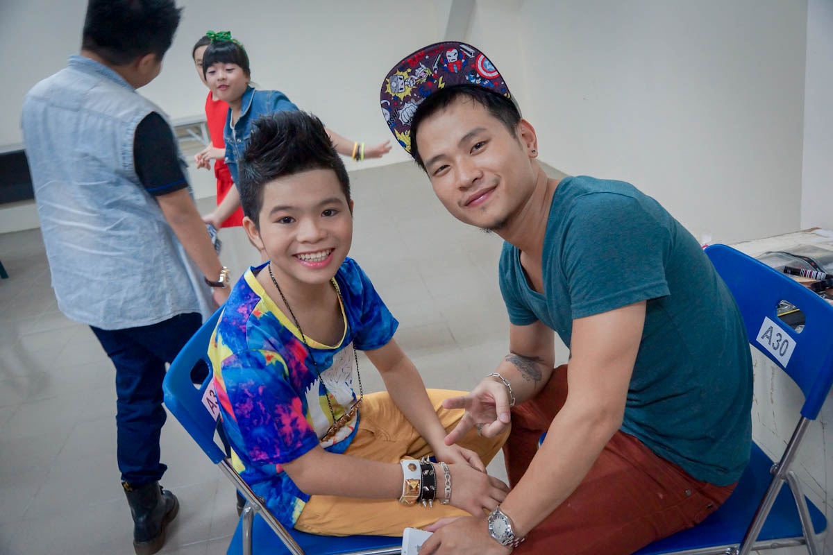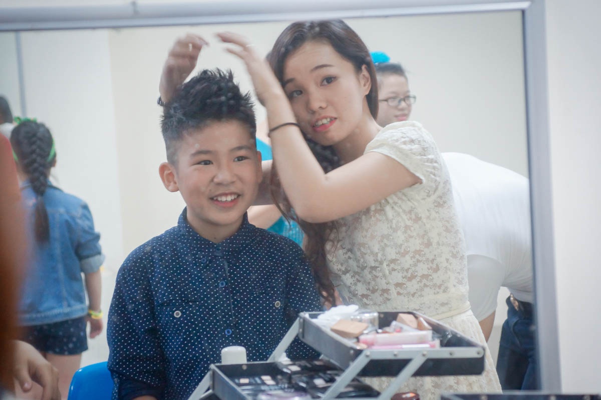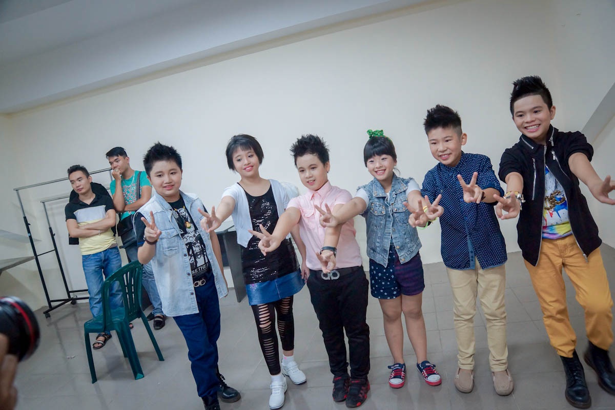 | Các thí sinh nhí sau khi đã được make-up xong. Hiếm hi có dịp được gặp lại nhau đông đủ, các bé luôn quấn quýt bên nhau vui đùa, trò chuyện. |
