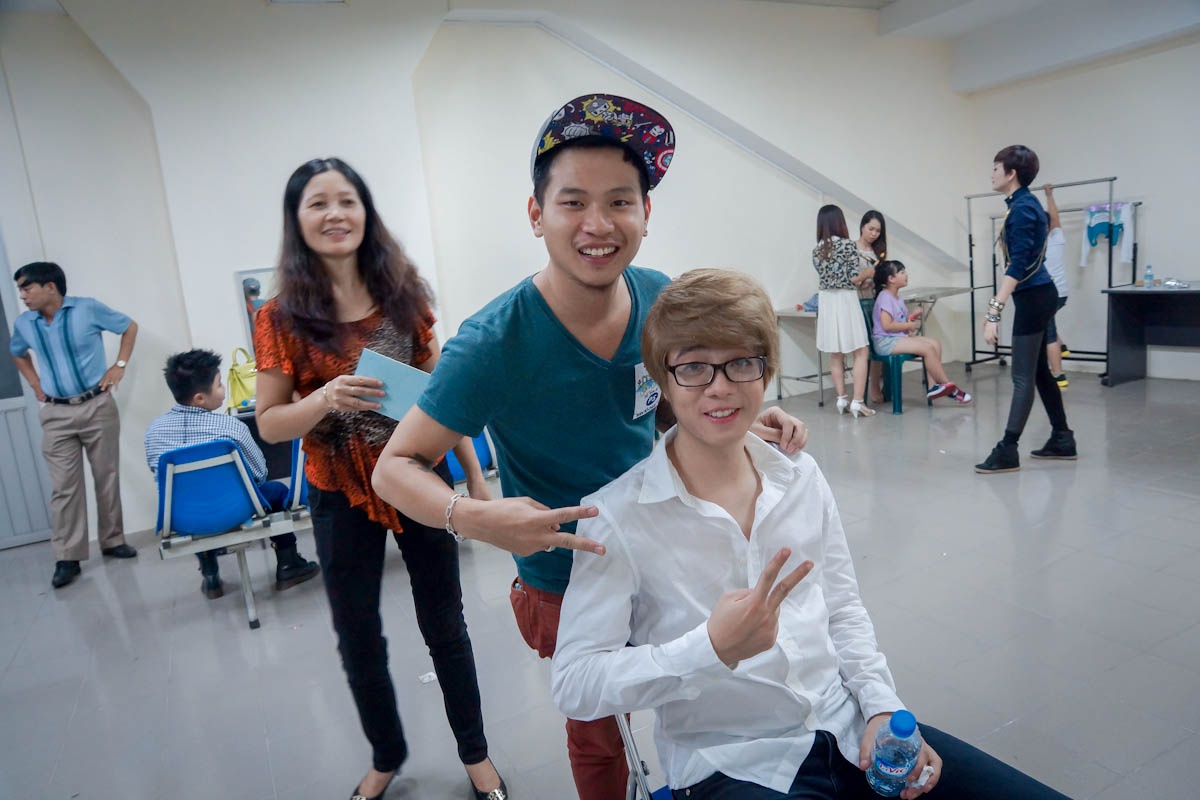 | Mẹ Bùi Anh Tuấn luôn theo sát con trai. Hoàn Khang và Bùi Anh Tuấn chụp ảnh xì tin. |