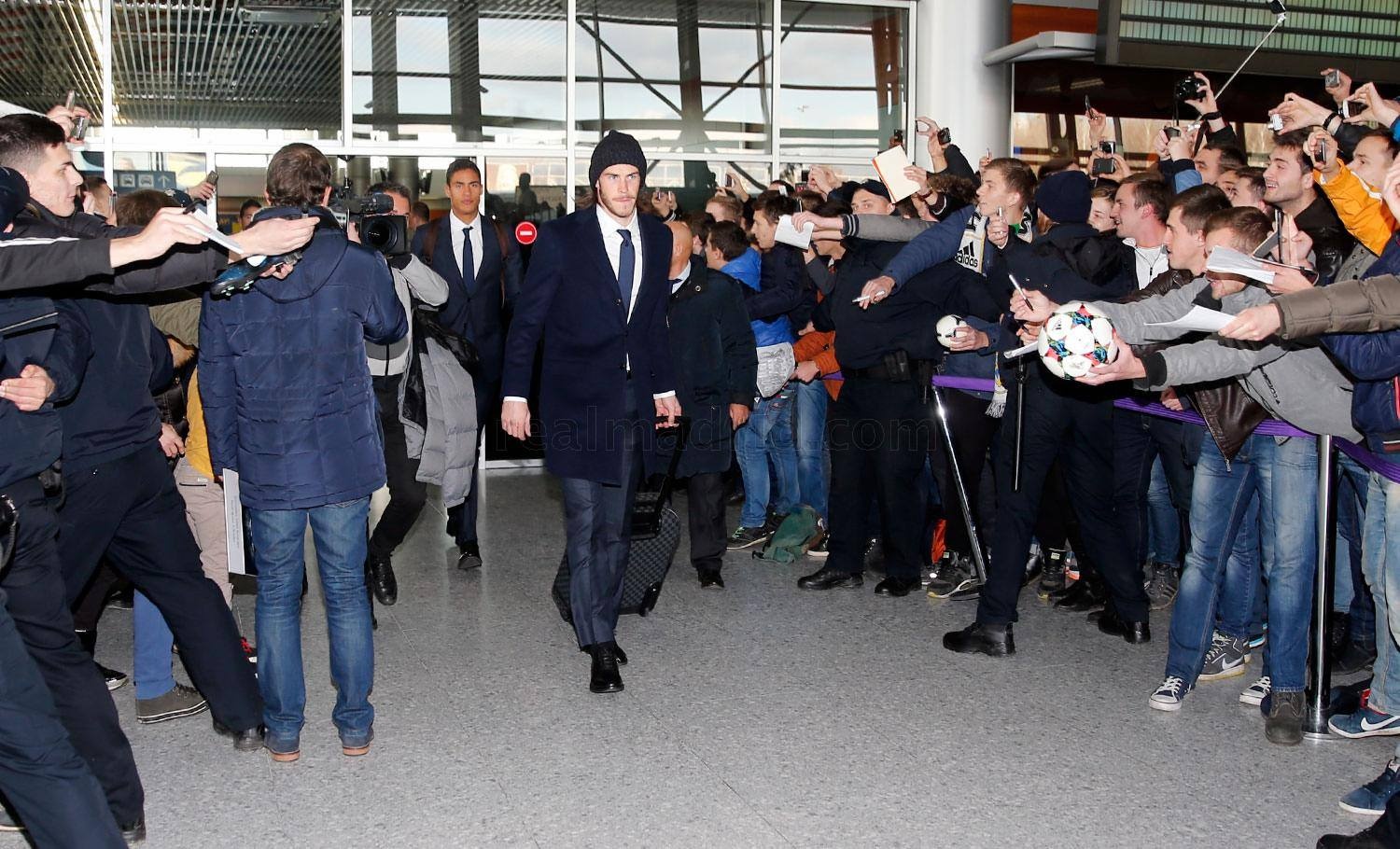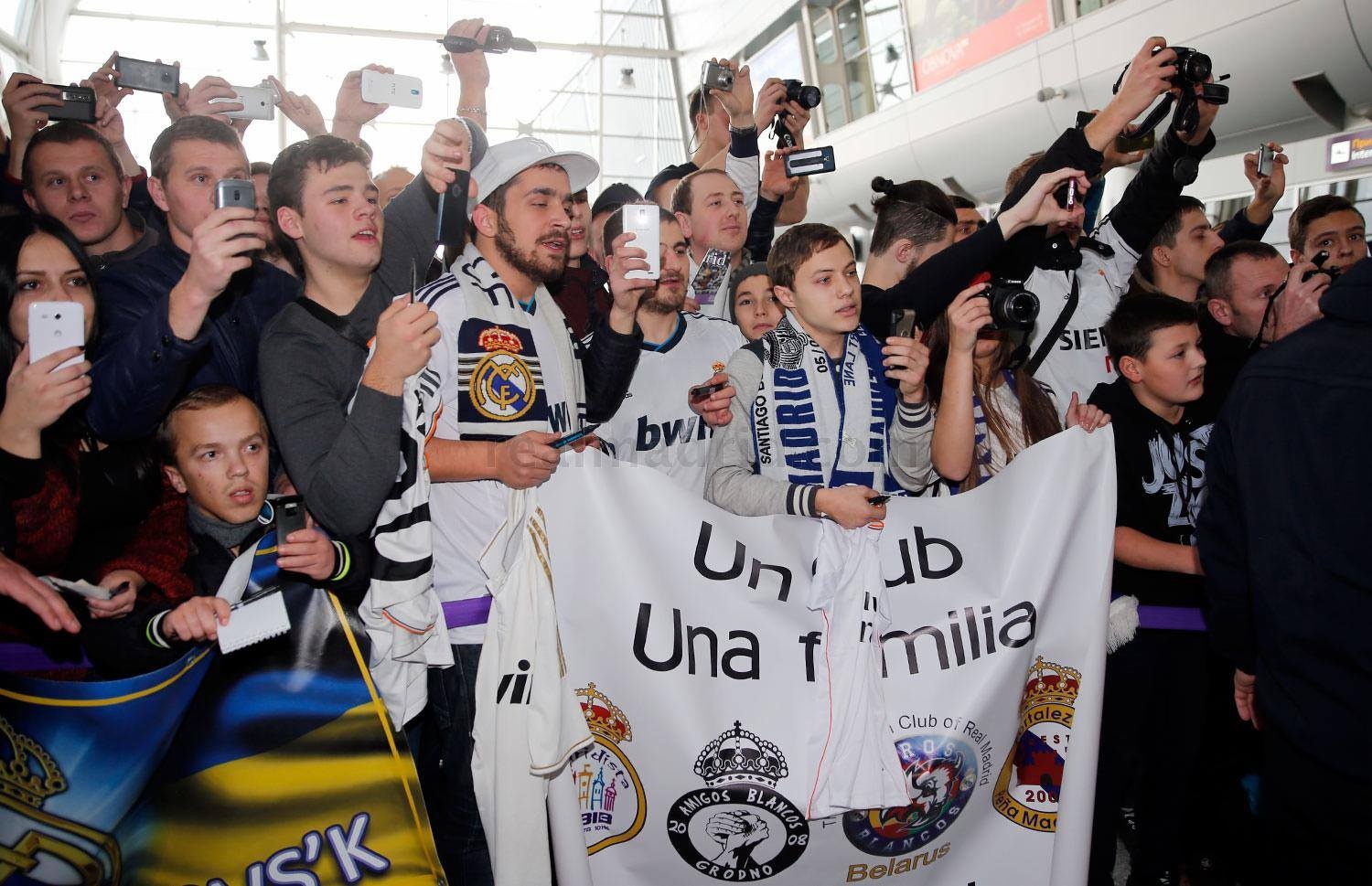 | Khá đông người hâm mộ Real tại Ukraine ra sân bay quốc tế Lviv để chào đón đội bóng Hoàng gia Tây Ban Nha. |