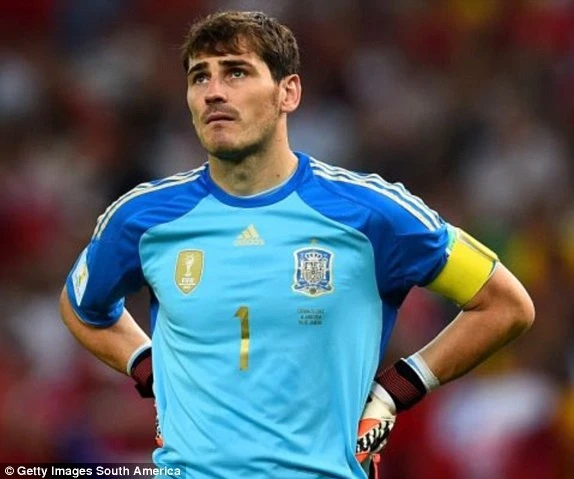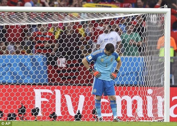 | Thủ môn Iker Casillas thẫn thờ rời sân sau trận thua thứ 2 của ĐT Tây Ban Nha ở World Cup 2014. |
