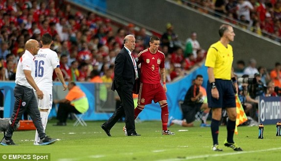 | "Ngài râu kẽm" tăng cường hàng công cho ĐT Tây Ban Nha khi đưa Torres vào sân, nhưng đáng tiếc là anh cũng không thể giúp đội nhà xuyên thủng mành lưới Chile. |