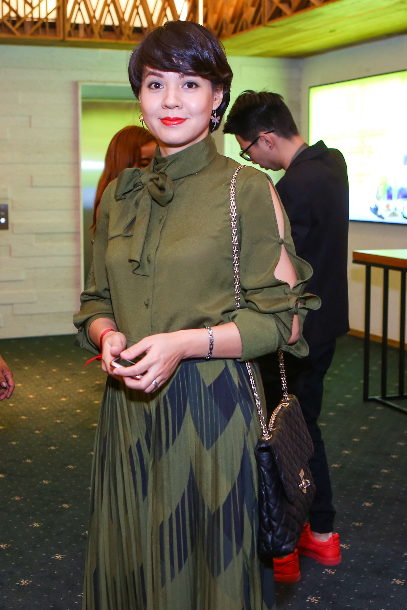 | MC Diễm Quỳnh ăn vận thanh lịch, đơn giản như chính con người chị. Chị được khen ngày càng trẻ so với tuổi thật. |