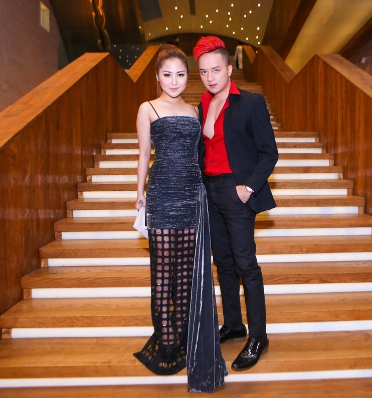 | Hồ Ngọc Hà luôn biết cách làm mình nổi bật mỗi khi dự tiệc. Chiếc đầm voan cúp ngực giúp cô khoe thân hình mảnh mai. |