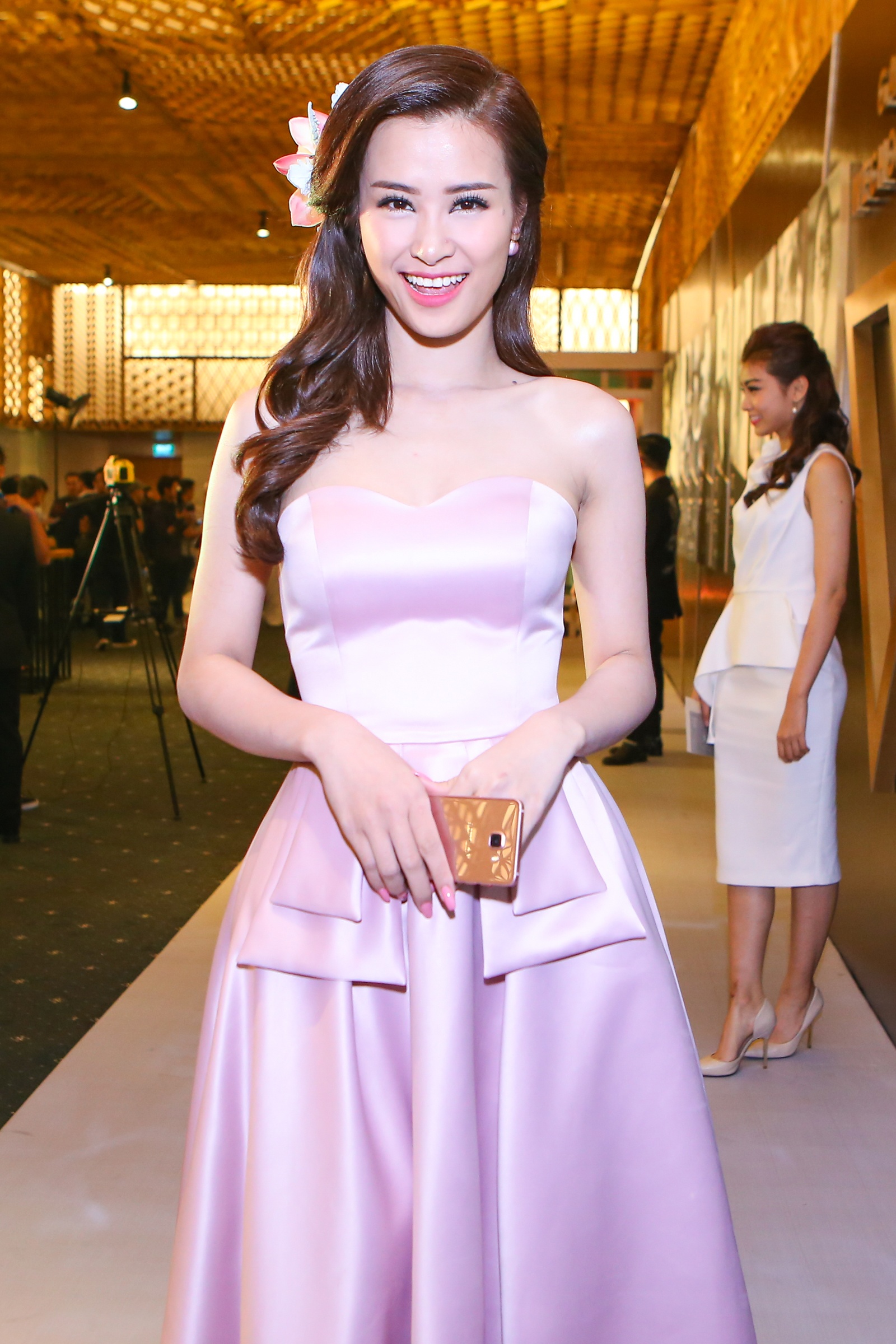 | Đông Nhi xuất hiện nữ tính trong chiếc đầm cúp ngực màu hồng thạch anh - gam màu xu hướng của năm nay. Mới đây, cô là ca sĩ duy nhất lot top 30 người trẻ có sức ảnh hưởng năm qua do Fobes bình chọn. |