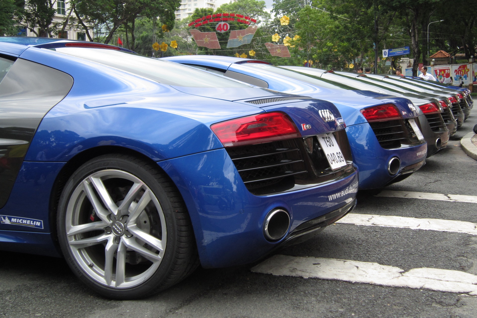 | Ngày 18/6, 8 chiếc Audi R8 được nhập khẩu về Việt Nam theo dạng tạm nhập tái xuất để chuẩn bị cho sự kiện riêng của hãng sắp diễn ra tại Phú Quốc. |