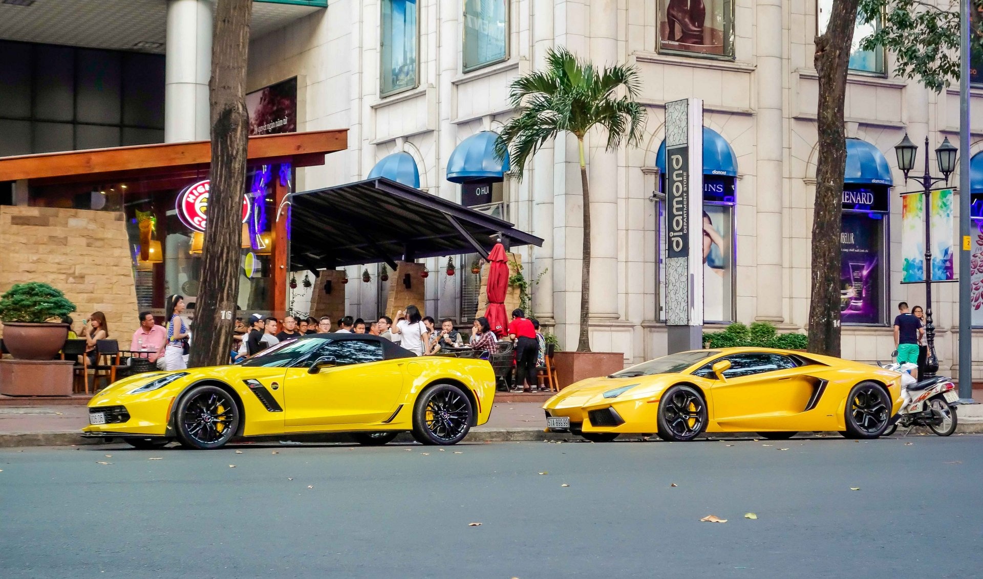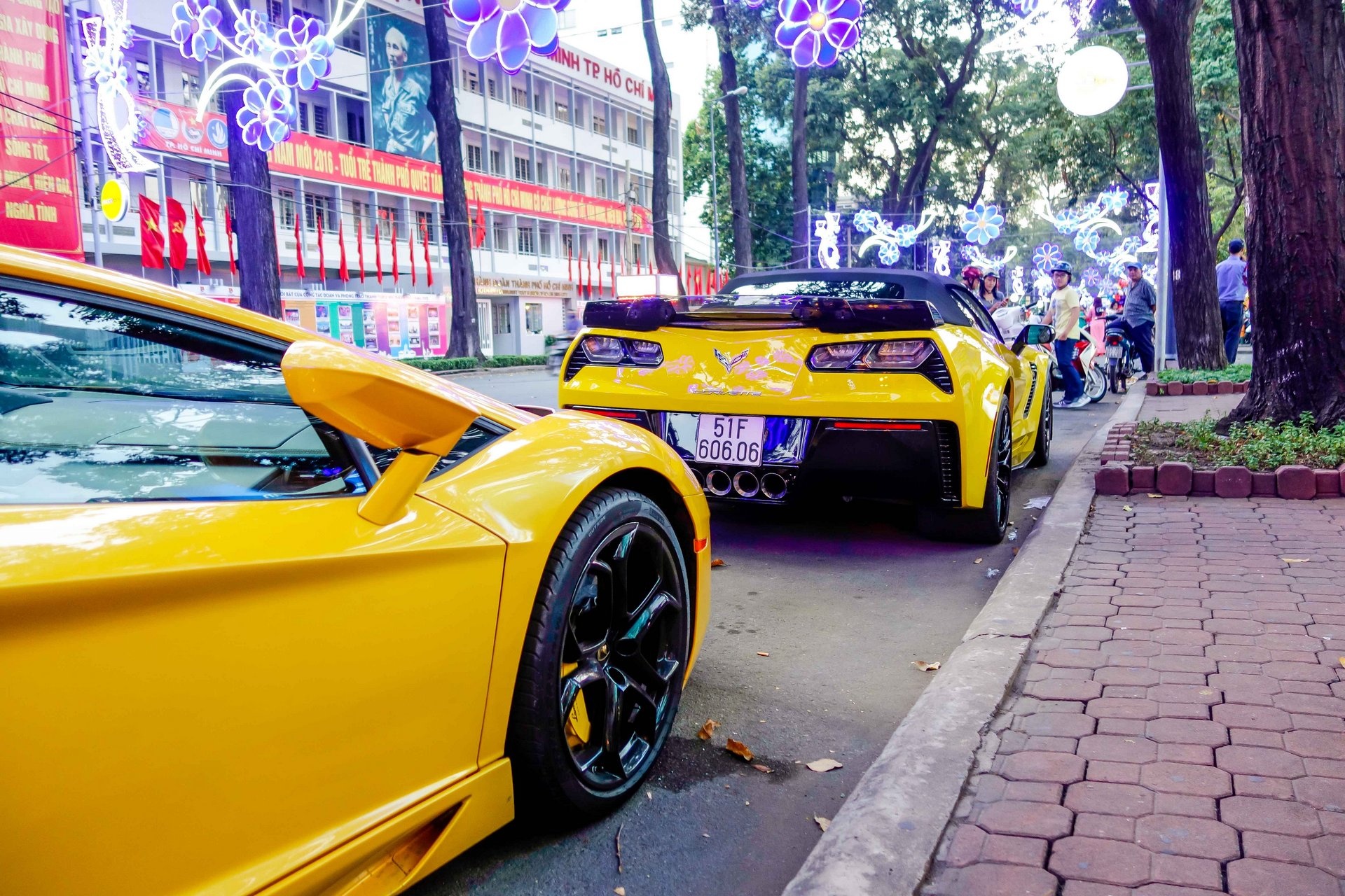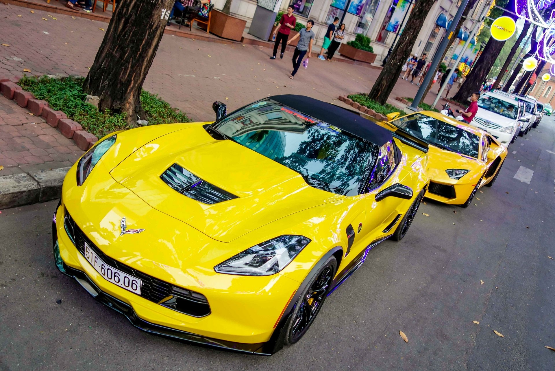 Hai siêu xe màu vàng cùng xuất hiện gần nhà thờ Đức Bà. Dẫn đầu là chiếc Chevrolet Corvette Z06 mui trần đầu tiên tại Việt Nam. Hiện nay Việt Nam có khoảng gần 10 chiếc Corvette C7,