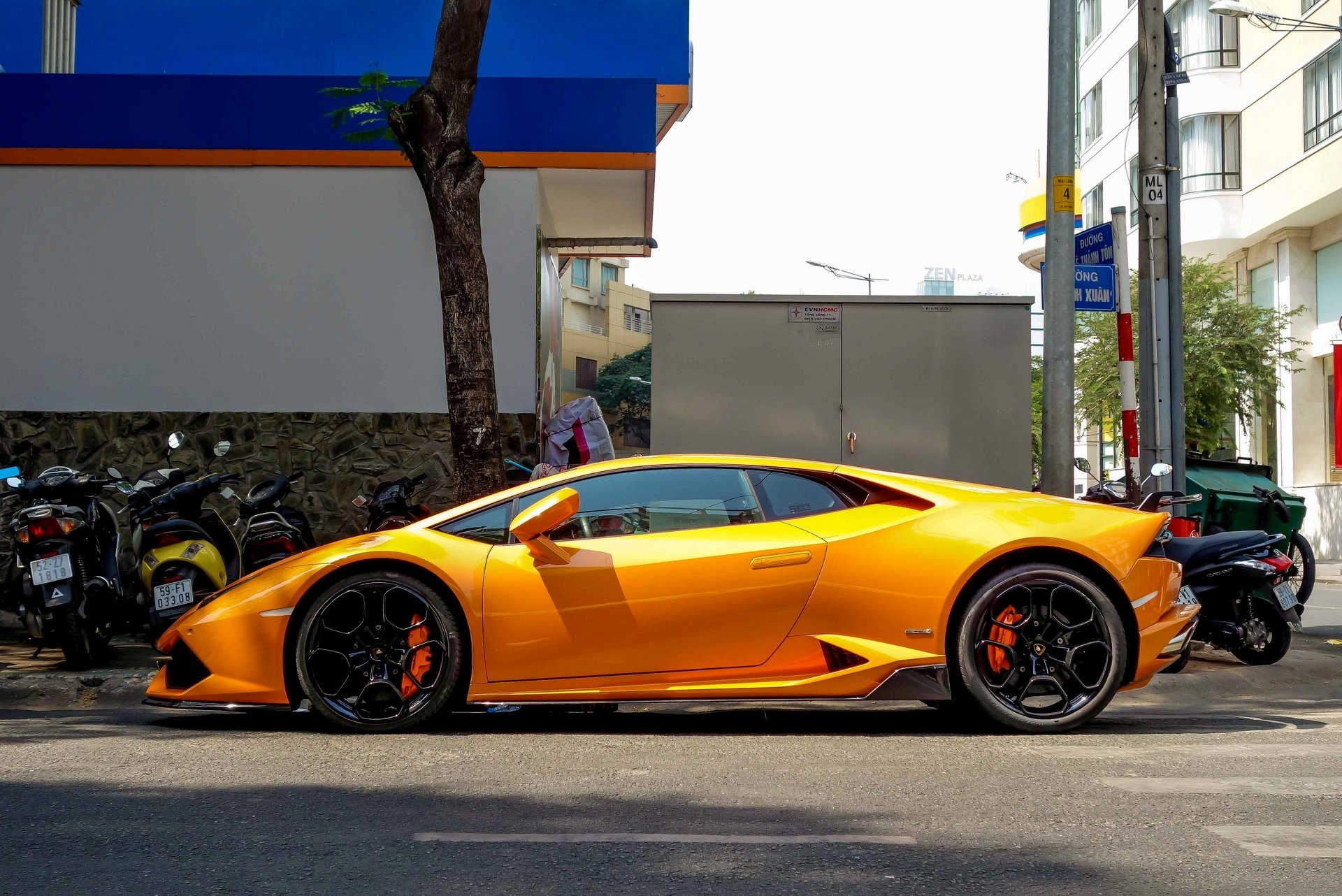 Lamborghini Huracan độ ống xả Capristo cùng bodykit carbon hàng độc tại Việt Nam. Hiện nay, Việt Nam có 8 chiếc Lamborghini Huracan, trong đó hai chiếc màu cam.