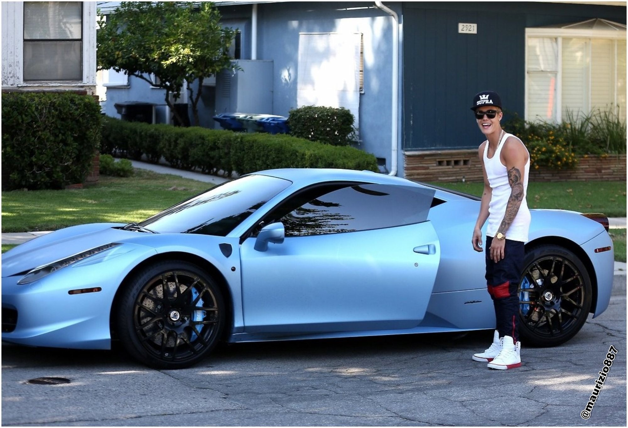Siêu xe Ferrari 458 Italia ban đầu của Justin Bieber có màu trắng. Tuy nhiên, chàng sỹ Canada lại muốn tạo sự khác biệt, khi thay bộ cánh màu xanh nhám nổi bật cho xe. Ngoài ra, bộ sưu tập xe của Justin Bieber còn có 1 siêu xe Ferrari F430 Scuderia và 1 siêu xe Ferrari 458 Italia Spider mới tậu.